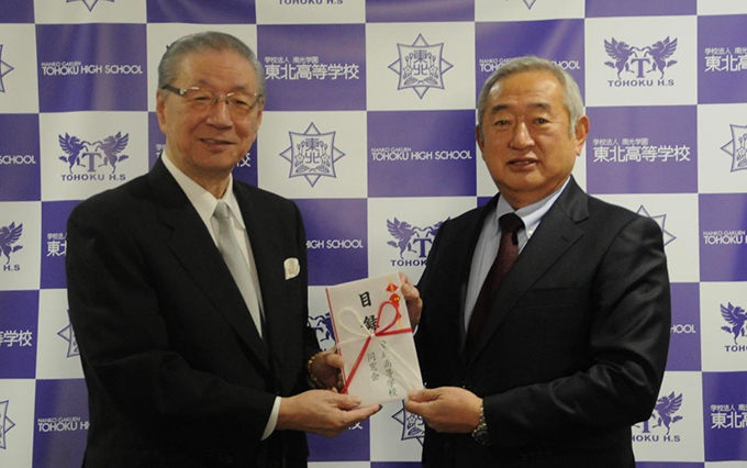 第98回選抜高等学校野球大会(春の選抜大会)の代表校として硬式野球部の出場が決定いたしました。 これに際しまして、第98回選抜高等学校野球大会の出場支援金が、村上同窓会長より大槻理事長へ贈呈されました。